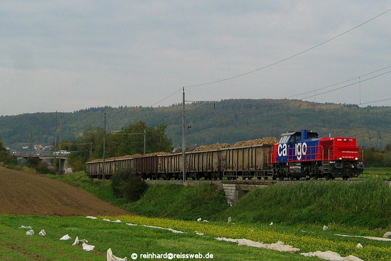 Am 843 060 fährt mit den Rübenwagen aus Schlatt u. Diessenhofen Richtung Etzwilen (Diessenhofen, 08.10.2004).