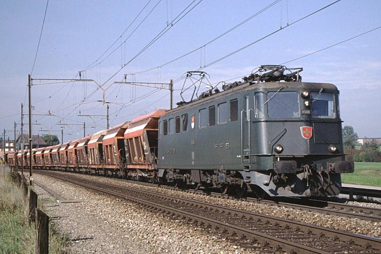 Ae 6/6 11508 "Wettingen" bringt einen Kieszug Richtung Gotthard (Rotkreuz, 16.10.2002)