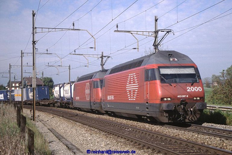 Wenn die Pläne der SBB exakt umgesetzt werden, wird man solche Bilder nicht mehr lange erleben. Alle 460 werden dem Bereich Personenverkehr zugeteilt, SBB Cargo erhält dafür 40 weitere Re 482 (Rotkreuz, 16.10.2002)