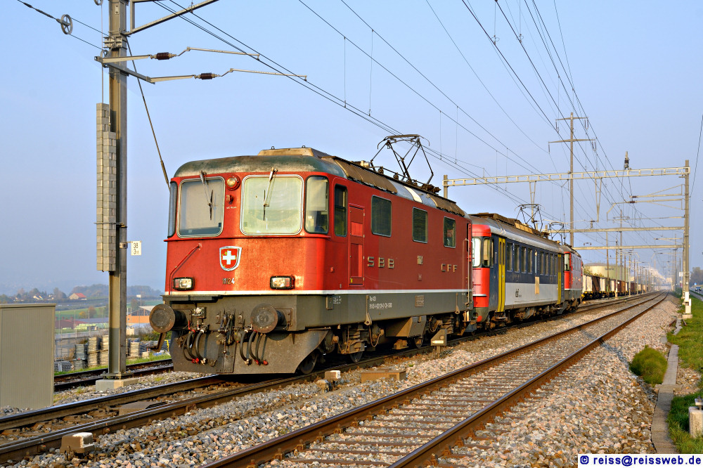 Re 4/4 II 11124, RBe 4/4 540 074 (DSF) und Re 4/4 II 11118 (alle vom EVU