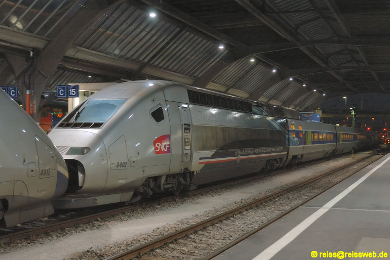 Die beiden Triebköpfe des Weltrekord-TGV (4402) laufen nach ihrer "Normalisierung" längst wieder im Plandienst. Am 18.02.2009 stand die Garnitur zusammen mit TGV-POS 4412 im Zürcher HB zur morgendlichen Abfahrt nach Basel - Mulhouse - Paris bereit.