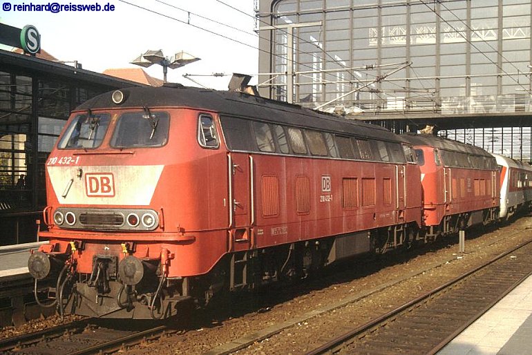 | Nur von Herbst 1996 bis Ende 1998 gab es eine 2. Baureihe 210 (nicht zu verwechseln mit der 1. BR 210 [Gasturbine] aus den Jahren 1970 - 1973). Es waren umgezeichnete Loks aus der Serie 218.4, die mit verstärkten Gelenkwellen und anderen Modifikationen in der Lage waren, IC-Züge mit 160 km/h zu fahren (Einsatz zwischen Berlin und Nauen wg. Fahrdrahtlücke). |