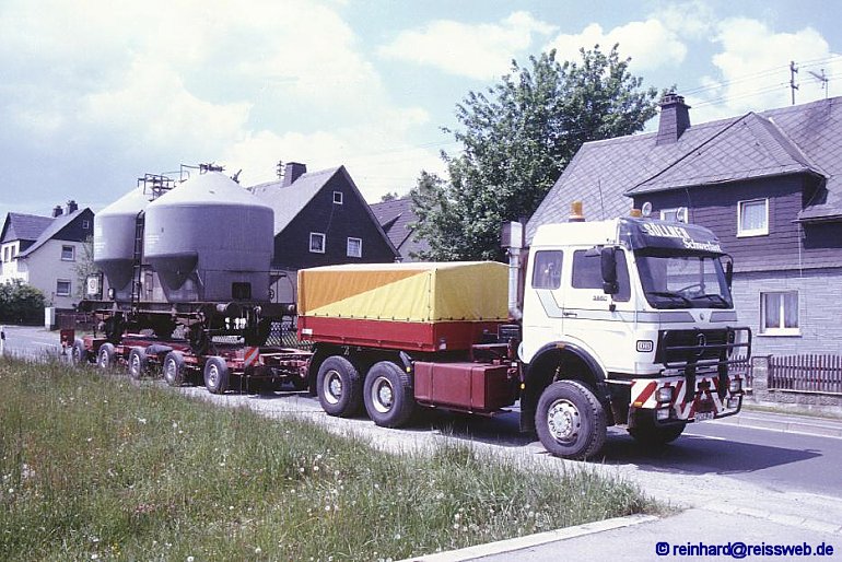 ... wurde deshalb mit einem Strassenroller durchgeführt. Lange Jahre in DB-Eigenregie, war zum Zeitpunkt der Aufnahmen (Mai 1990) bereits ein Subunternehmer mit diesem Service beauftragt, hier bei der Zufahrt zum Bahnhof Steinbach a. Wald.