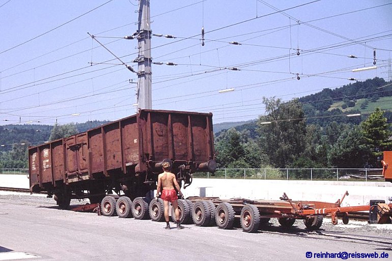 Abladen eines E-Wagens im Bhf. Frastanz, was allein durch die Schwerkraft erledigt wurde.