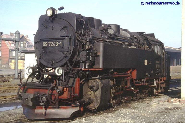 99 7243 (damals noch in Reichsbahn-Obhut) wartet im Bw Wernigerode auf ihren nächsten Einsatz (November 1990).