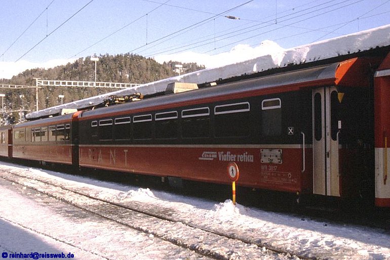 Dieser Speisewagen (RhB WR 3816/3817)besteht aus 2 Wagen, die im Betrieb nicht getrennt werden, da die Küchen- und Restaurantausrüstung sich über beide Wagen erstreckt. Deshalb trägt er auch den Titel "längster Speisewagen der Welt".