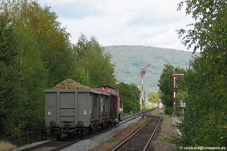 294 249 verlässt mit der Nachmittagsübergabe (die nur zur Rübenzeit gefahren wird) gegen 15:50 Uhr Wilchingen-Hallau (08.10.2003).