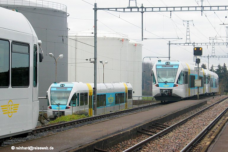 4 der 5 Fahrzeuge sind hier auf dem Bild zu sehen, aufgrund der praktisch nicht erkennbaren Nummern (hellgelbe Ziffern auf weissem Grund) verzichte ich auf die Beschreibung der einzelnen Fahrzeuge (Lengwil, 17.11.2003).