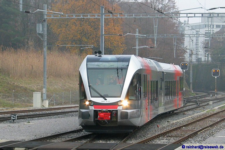 GTW 2/6 der STA (Südtiroler Transport Strukturen AG), bestimmt für die Strecke Meran - Mals, fährt in Kreuzlingen ein (21.11.2003).
