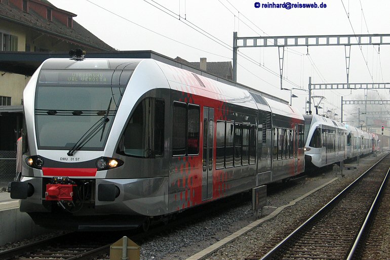 Paradeaufstellung der GTW in Kreuzlingen in der Reihung STA-GTW 103 001, Thurbo 526 702, OSE 560 112, SBB 520 013 und RM 526 263 (21.11.2003).