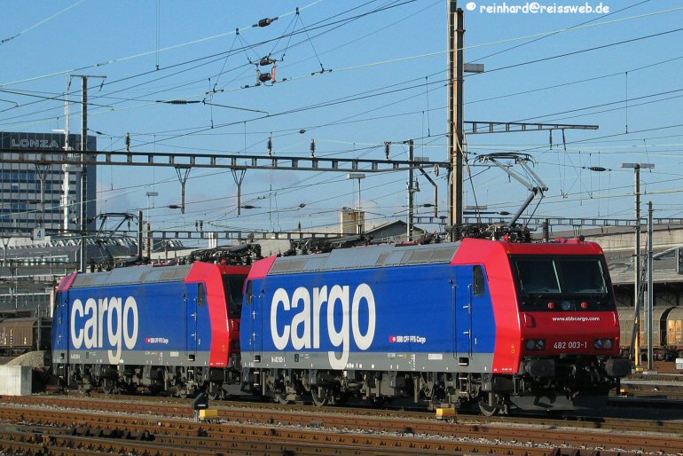 482 003 & 005 stehen im Vorfeld des Depot Basel (29.12.2003). Ingesamt waren an diesem Tag 14 Loks der BR 482 im Bereich des Depot Basel abgestellt.