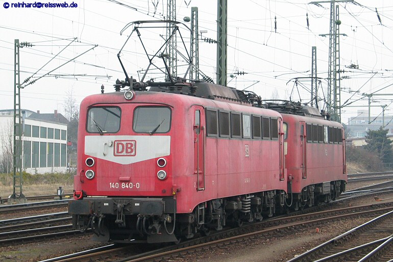 140 793 & 840 haben in Doppeltraktion einen Zug nach Singen gebracht und setzen ans westliche Ende des Bahnhofs um (05.03.2004).