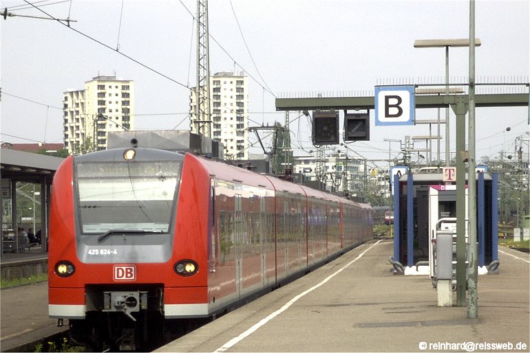 Eine 425-Doppeleinheit fährt, aus Karlsruhe kommend, in Stuttgart Hbf ein. Der Einsatz dieser Triebwagen im Stuttgarter Raum begann erst wenige Tage zuvor.