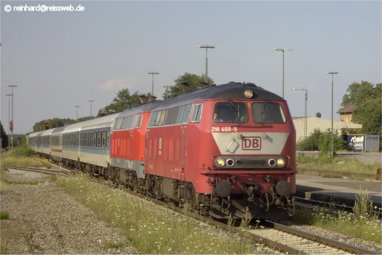 Am Abend des 22.07. fahren 218 469 und 218 346 mit dem IR 2209 München-Oberstdorf in Buchloe ein.