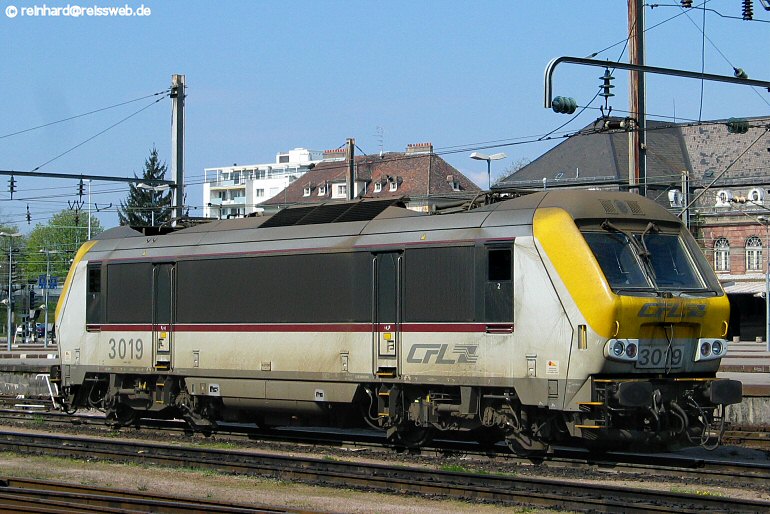 Im Bahnhof Mulhouse und damit recht weit von der luxembourgischen Grenze entfernt steht CFL 3019, zusammen mit der baugleichen Reihe 13 der SNCB laufen diese Maschinen bis Mulhouse durch (15.04.2004).