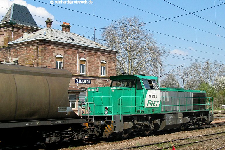 BB61004 steht mit 4 Kesselwagen abfahrbereit nach Neuenburg (D), wo die Wagen an DB Cargo übergeben werden (Bantzenheim, 15.04.2004).