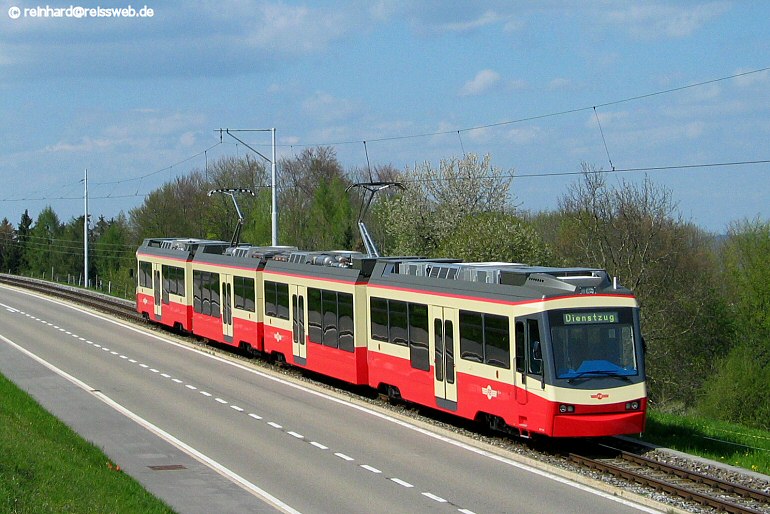Be 4/6 63 & 61 der Forchbahn sind im Rahmen einer nicht öffentlichen Extrafahrt zwischen Neuhaus und Forch unterwegs (24.04.2004).