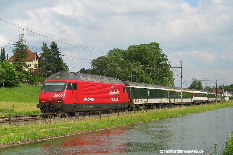 460 016 fährt mit IC 834 am Gewerbekanal in Bürglen vorbei (18.06.2004).