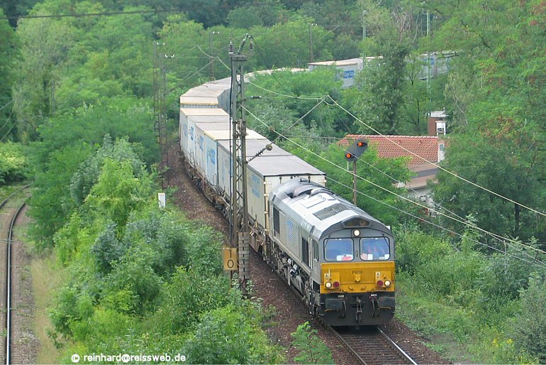 DLC PB19 bringt einen Zug des kombinierten Verkehrs nach Basel Bad Rbf. Dieser Zug wird von 3 BLS-185 weiter nach Domodossala gefahren (25.08.2004).