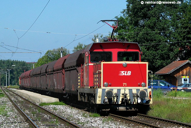 Ein Kohlenzug der Salzburger Lokalbahn steht mit 3 Loks abfahrbereit in Weitwörth-Nußdorf zur Weiterfahrt nach Bürmoos - Riedersbach (28.08.2004).