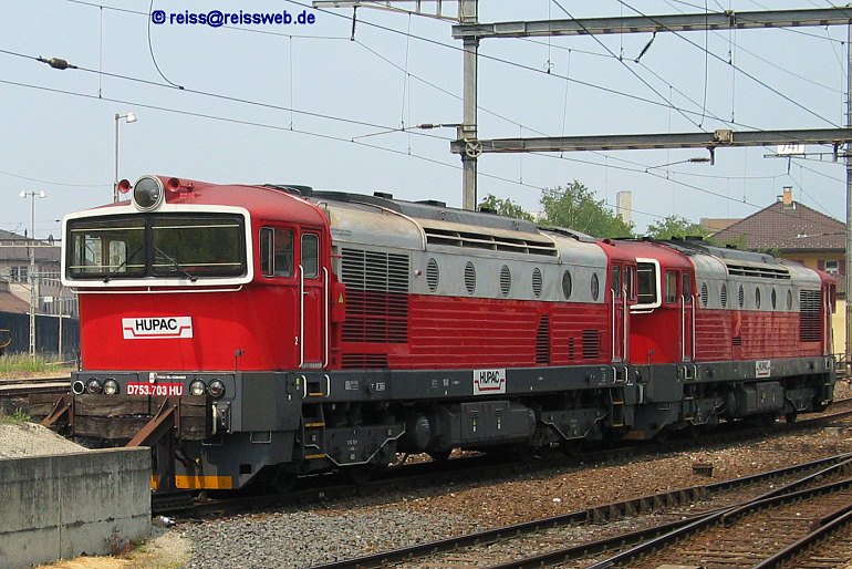 Feiertagsruhe für zwei HUPAC-Dieselloks der Baureihe 753. Über verschiedene Stationen gelangten die Loks aus Tschechien zur HUPAC. Sie besitzen die italienische Zulassung und werden im Güterverkehr eingesetzt (Chiasso, 26.05.2005).