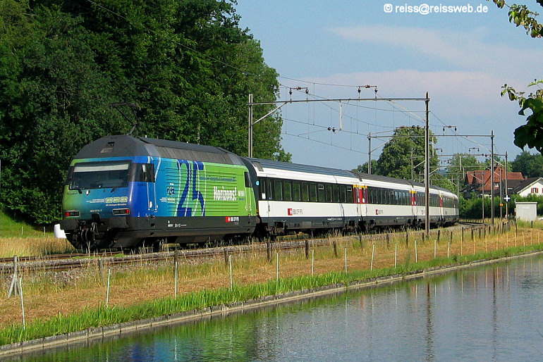 460 079 "VCS" fährt mit IC 829 Brig - Romanshorn am Gewerbekanal in Bürglen (Thurgau) entlang (24.06.2005).