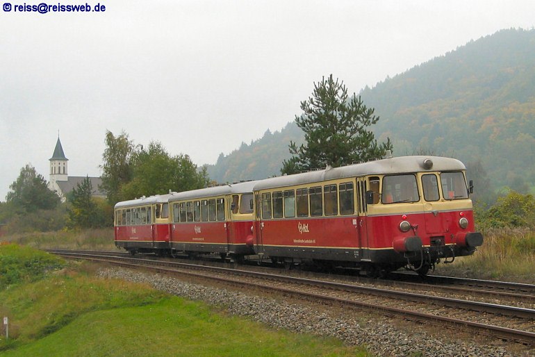 wurde die 2. benötigte Garnitur für die Seehäsle-Linie durch die HzL gestellt, allerdings wurde die Schienenbuseinheit für 4 Wochen fest angemietet (Stahringen, 21.10.2005).