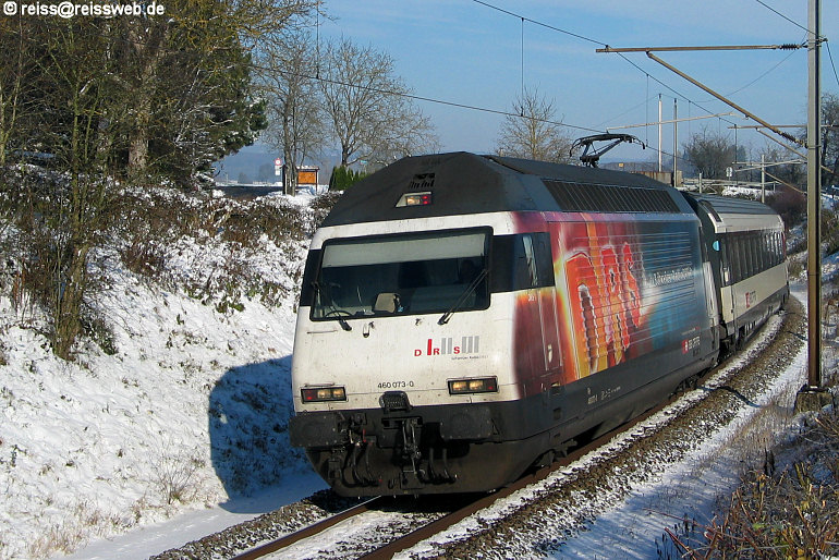 460 073 "DRS I" durchfährt das winterliche Lottstetten mit Zug 2571 Schaffhausen - Zürich (26.11.2005).