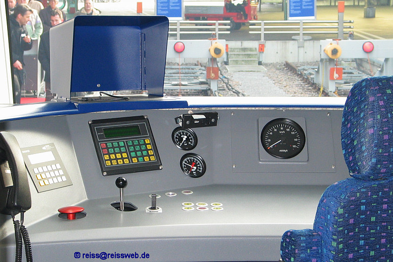 Führerstandsaufnahme des 1.-Klasse-Endwagens der Reihe RABe 514 (Zürich HB, 02.12.2005).