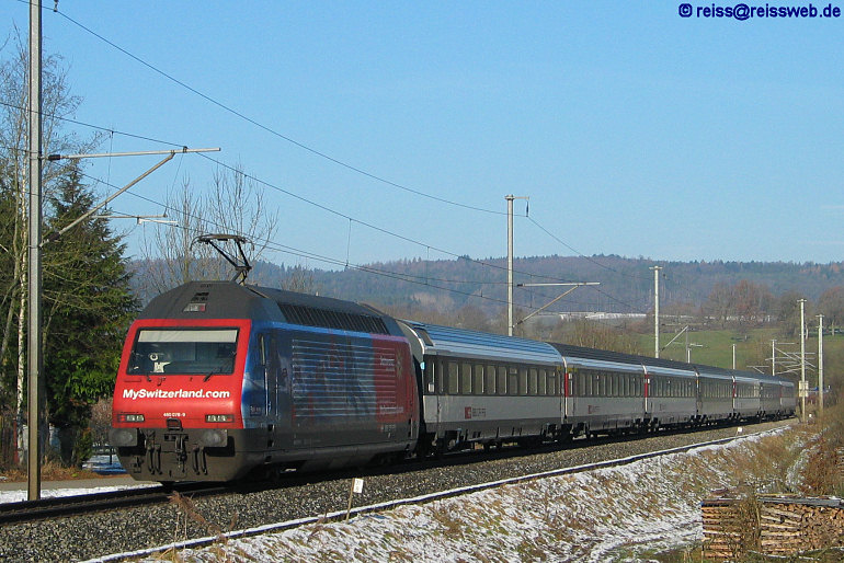 ist eine Fotostelle nahe der Gemeindegrenze zwischen Lottstetten und Jestetten, durch das Fällen zahlreicher Bäume sind neue Einblicke möglich. 460 078 "My Switzerland" schiebt IR 2568 nach Schaffhausen (12.12.2005).