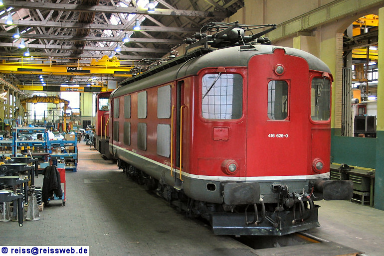 Die ehemalige MThB 416 626, inzwischen in Privatbesitz, soll für R4C wieder eingesetzt werden, die nötigen Untersuchungen hat sie im Jan./Febr. 2006 bei Winpro in Winterthur erhalten (10.02.2006).