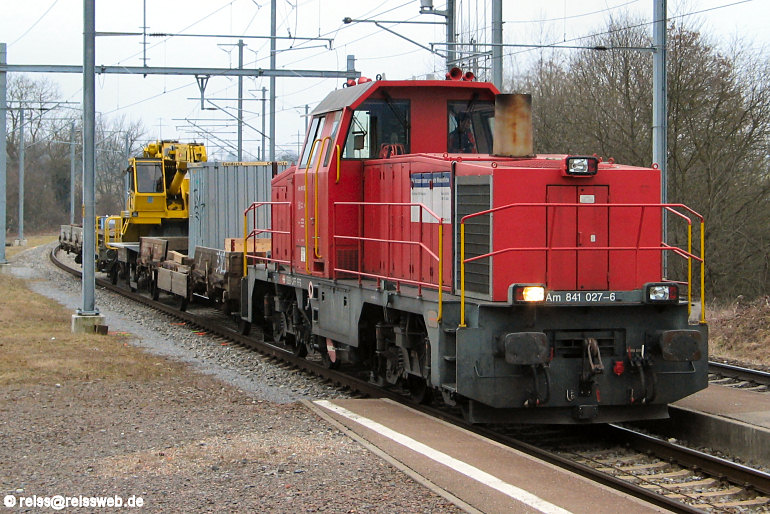 Am 24.02.2006 war Am 841 027 mit einem Bauzug Richtung Schaffhausen unterwegs, aufgenommen wurde sie in Altenburg-Rheinau.