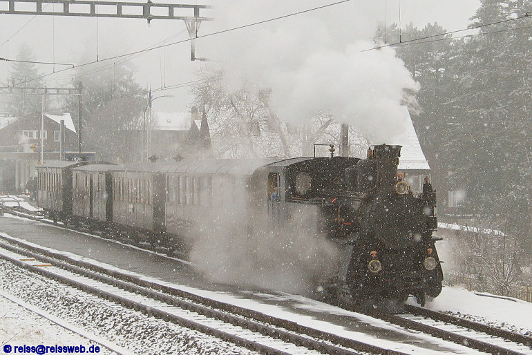 HG 3/3 1067 beim Warten auf den Gegenzug in der Station Lungern (26.02.2006).