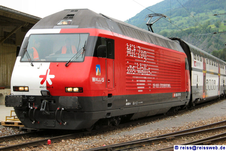 460 090 "Wallis/Valais" wurde anlässlich der Feier "100 Jahre Simplontunnel" in Brig gezeigt (20.05.2006).