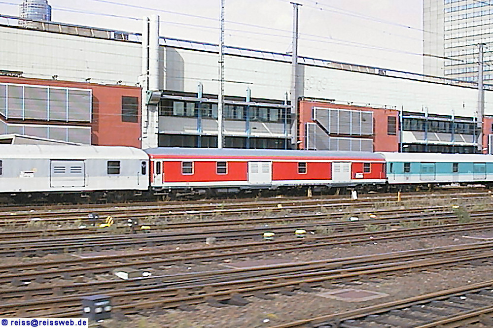 | Gepäckwagen in drei Farbgebungen, gesehen in Frankfurt (Main) und aufgenommen am 13.09.1997 (4 1/2 Jahre, bevor ich tatsächlich auf Digitalfotografie gewechselt habe). Die Kamera, die ich vom Arbeitgeber für ein Wochenende privat nutzen durfte, hatte eine Auflösung von 0,5 Megapixel (zumindest war sie so eingestellt). |