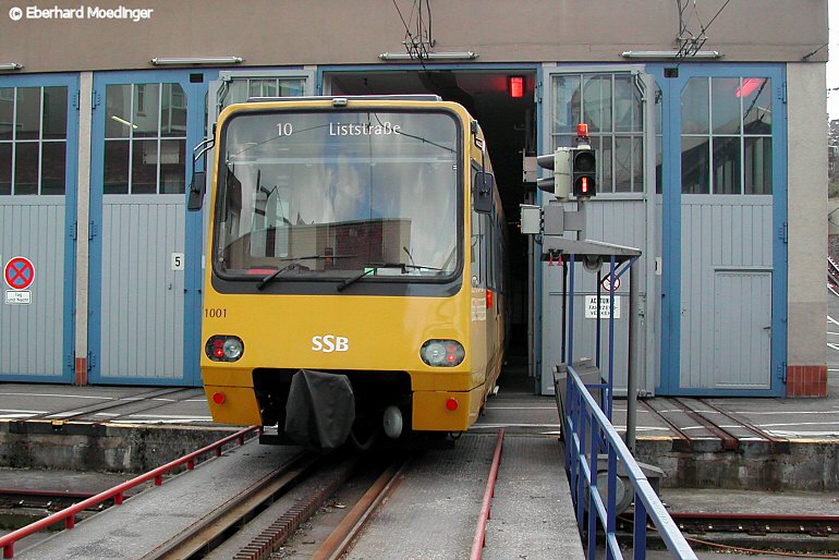 Einfahrt des TW 1001 in den Schuppen des Depots (Aufnahme von Eberhard Moedinger).