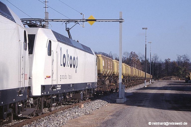 Der letzte Meter des Fahrdrahtes wird ausgenutzt, um die Wagen in die richtige Position zu bringen (20.11.2001).
