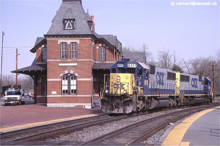 Zwei so genannte “Helper” vom Typ SD50, die einen Kohlenzug nach Washington D.C. nachgeschoben haben, warten auf die Freigabe zur Rückfahrt nach Brunswick. (Point of Rocks, 08.04.2002)