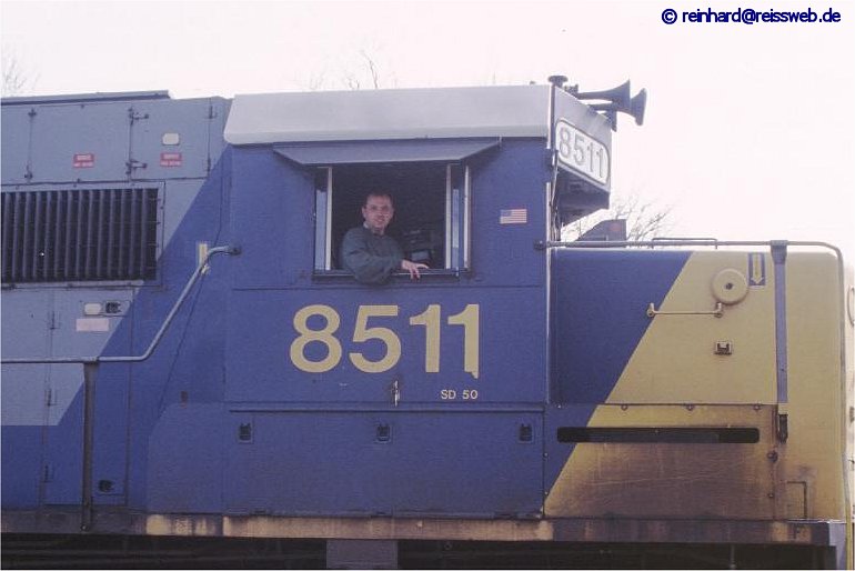 Das erste (und wahrscheinlich) das einzige Mal, wo der Autor dieser Webseiten (meine Wenigkeit) auf einem Bild selbst in Erscheinung tritt. Aufgenommen vom freundlichen Lokführer der 8511 (08.04.2002).