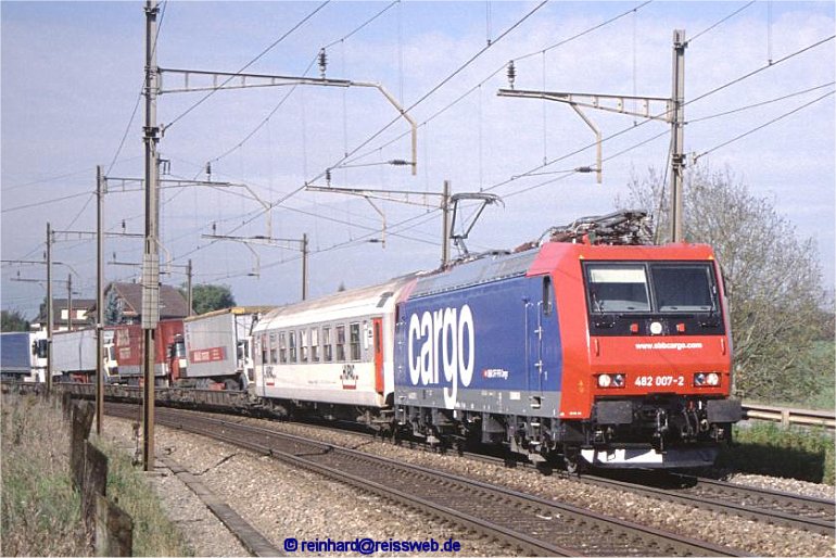 Bei z. Zt. nur 10 Loks der BR 482 häufen sich natürlich die Fotos mit gleichen Loknummern. Also wiederum 482 007, diesmal bei Rotkreuz am 16.10.2002