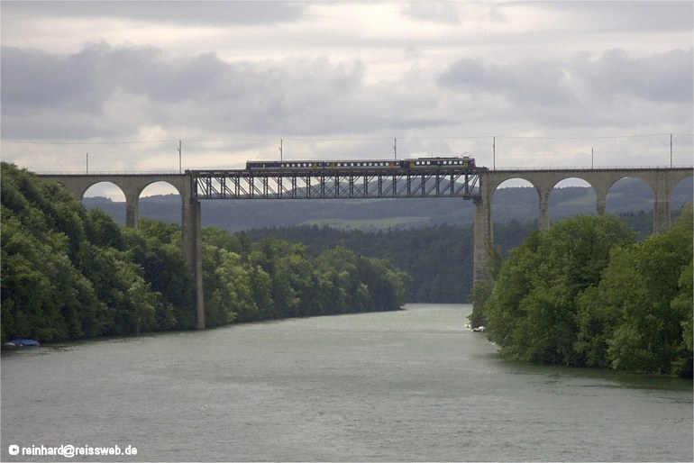 Beginnen möchte ich die Galerie mit einer Aufnahme der Eglisauer Brücke, die gerade vom Pendelzug Bülach - Schaffhausen passiert wird (29.05.2002).