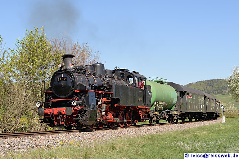 Das letzte Bild des Tages entstand bei der Bergfahrt am Bahnübergang Achdorfer Weg am Ortsrand von Fützen (24.04.2015).
