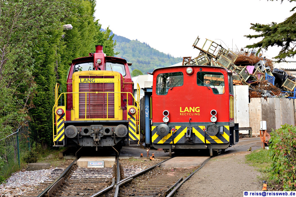 setzt Lang-Recycling in Gaggenau jetzt eine Kraus-Maffei-Lokomotive ML 225B (Fabrik-Nr. 19393, Bj. 1971) ein, die zuvor in verschiedenen Papierfabriken eingesetzt wurde. Links