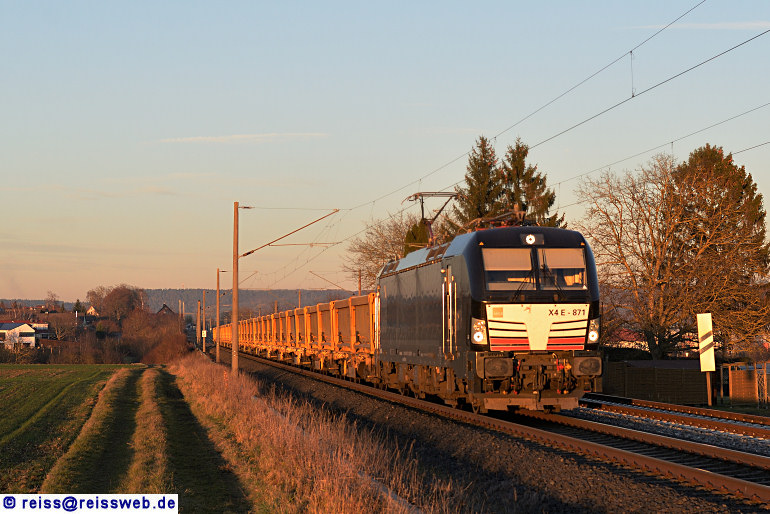 MRCE X4 E - 871 bringt am späten Nachmittag einen Zug mit Aushubmaterial Stuttgart 21 nach Deißlingen, aufgenommen bei Gäufelden (07.12.2015).