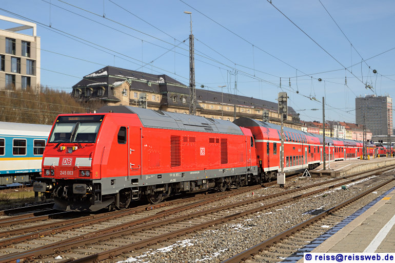 Die Kemptner 245 003 fährt mit einem Dosto-Wendezug im Starnberger Flügelbahnhof (München Hbf) ein (26.02.2016).