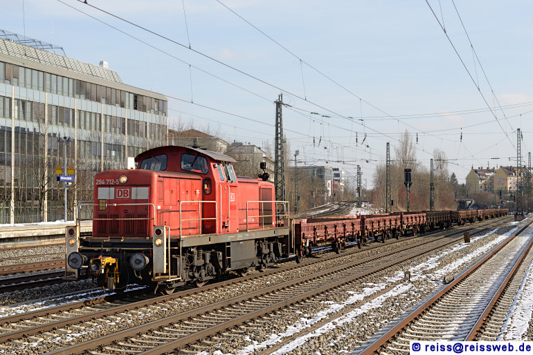 294 712 fährt mit einer Garnitur Niederbordwagen durch die S-Bahn-Station Heimeranplatz (26.02.2016).
