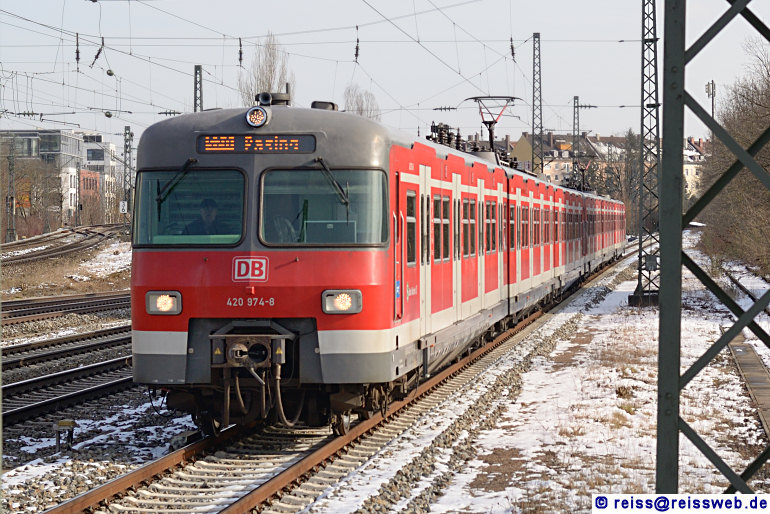 Nur noch auf den Linien S$ und S20 sowie auf der Strecke nach Altomünster wird die Baureihe 420 im Müncher S-Bahn-Netz eingesetzt. 420 474 / 974 erreicht als S20 den Heimeranplatz (26.02.2016).