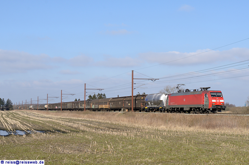 EG 3106 von DB Schenker Rail Danmark bringt einen Güterzug Richtung Süden und wird demnächst die deutsch-dänische Grenze bei Padborg erreichen (Tinglev, 11.03.2016).