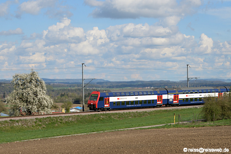 Eine unerkannt gebliebene DPZ-Komposition ist als S9 nach Schaffhausen unterwegs (Lottstetten, 14.04.2016).