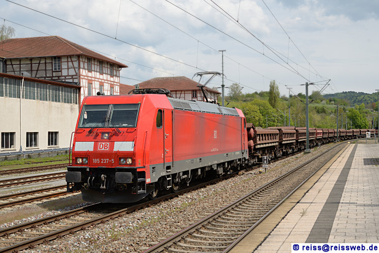 185 237 fährt mit einem Altschotterzug aus Singen in Rottweil ein (09.05.2016).